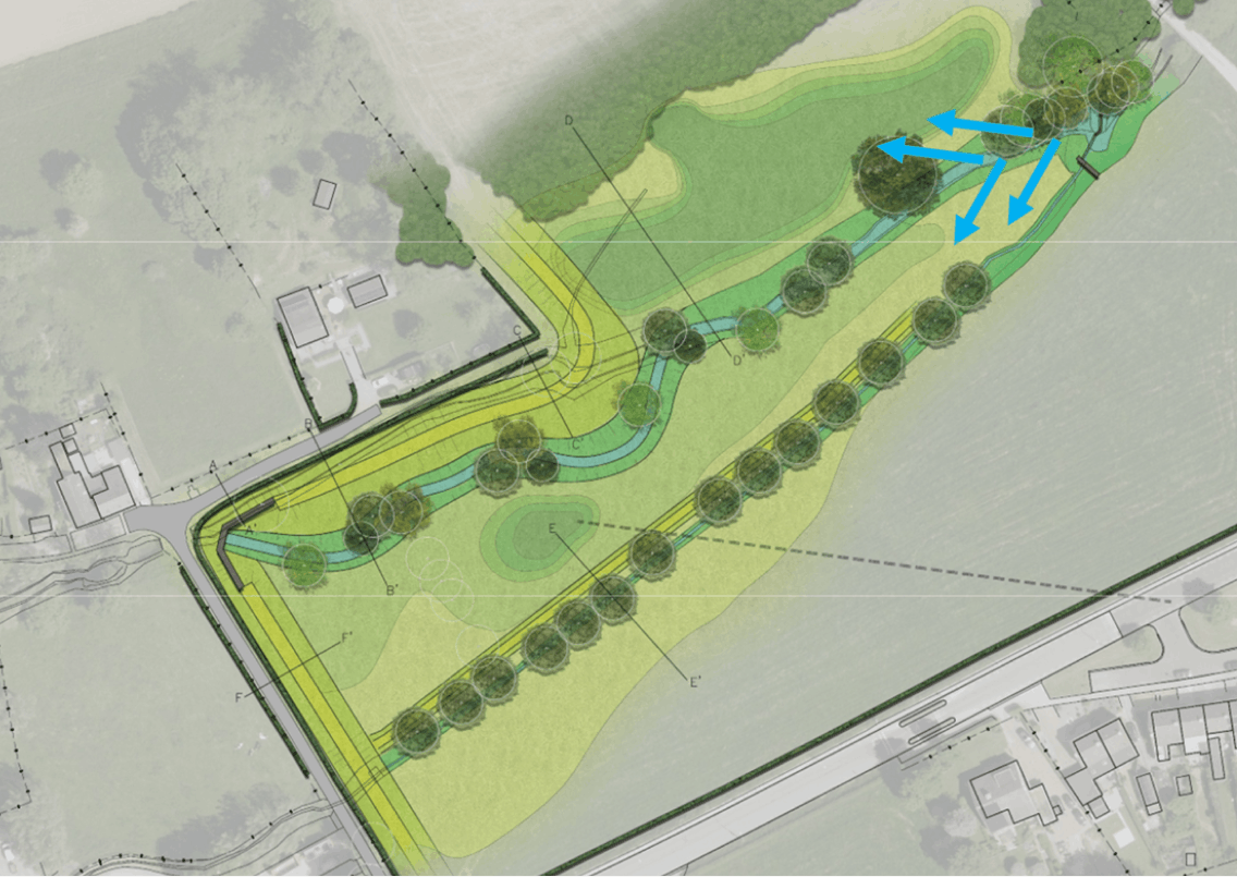 Reconstructie met tijdelijke waterberging in vergrote zijbermen voor vertraagde afvoer.