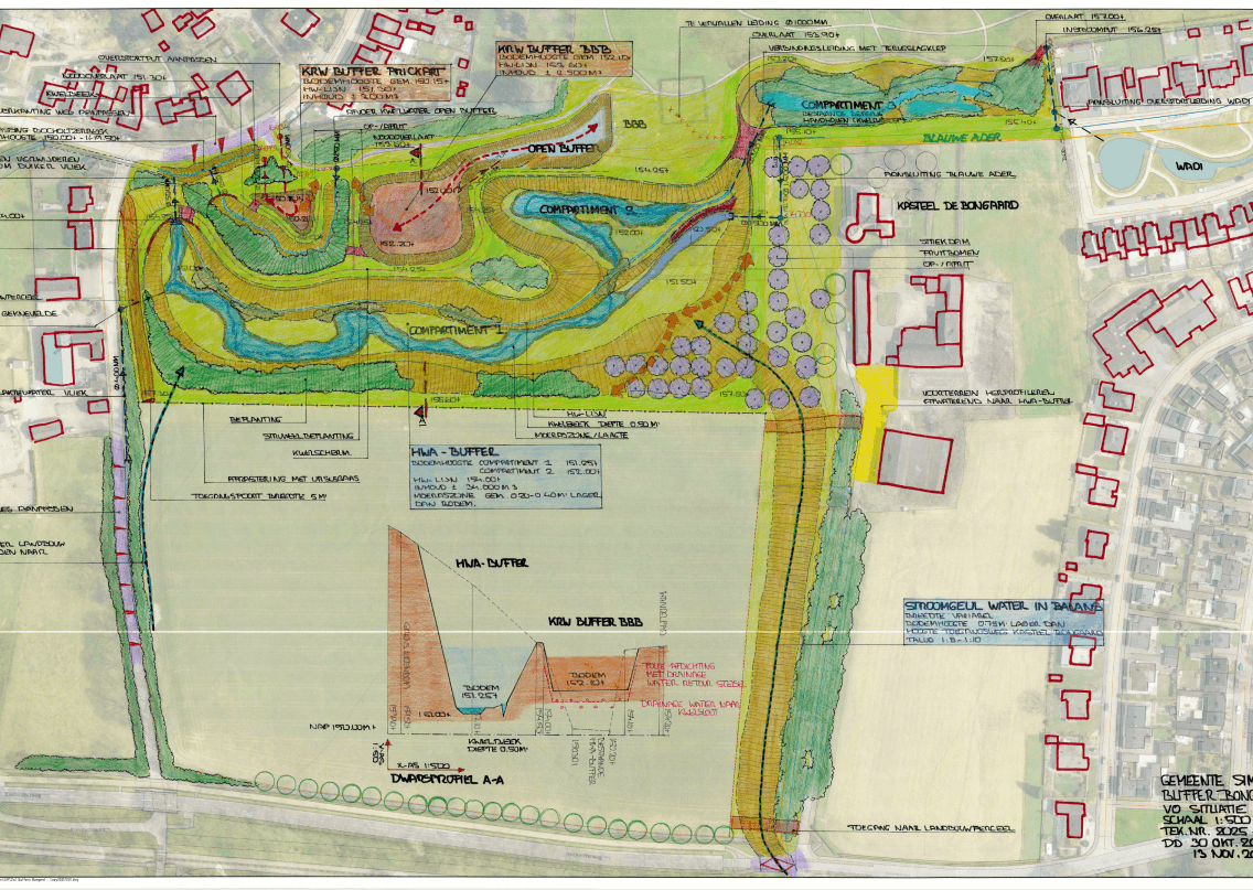 Bij de Bongerd in Bocholtz moet een grote regenwaterbuffer aangelegd worden waar het opgevangen regenwater van het verhard oppervlakte van de dorpskern Bocholtz in kan worden opgeslagen en vertraagd kan worden afgevoerd.